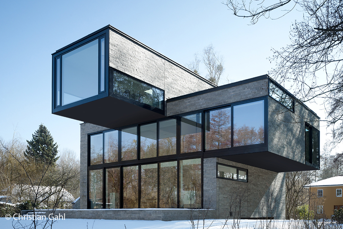 Einzigartiges Aussehen mit eindrucksvollen Aussichten. An Potsdams grünem Rand entstand diese außergewöhnliche private Villa mit Blick auf den Groß-Glienicker See und den Wald.
